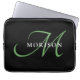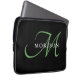 Elegantes, modernes Schwarz-Grün-Script-Monogramm Laptopschutzhülle