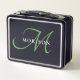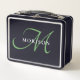 Elegantes, modernes Schwarz-Grün-Script-Monogramm Metall Brotdose