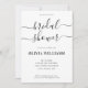 Elegantes Script Schwarz und Weiß Moderne Brautdusche Einladung. Laden Sie Ihre Familie und Ihre Freunde mit diesem minimalen modernen Hochzeitsgeschenk-Brautparty. Personalisieren Sie diese elegante und stilvolle Einladung mit Namen, Veranstaltungsort, Datum und Uhrzeit.
