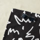 Elegantes modernes, schwarz-weißes Badetuch mit verstreuten, abstrakten, weißen Streifen auf schwarzem Hintergrund.