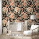 Elegantes, modernes Schwarzes Blumenmuster Tapete