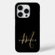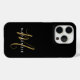 Elegante moderne Black Gold Script Monogram iPhone Case. Ein elegantes Goldskriptmonogramm in Verbindung mit einem weißen San-Serif-Schriftart sorgt für ein zeitgemäßes Aussehen.