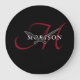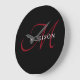 Elegantes, modernes Schwarzes Script Monogram Große Wanduhr