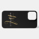 Elegante moderne Black Gold Script Monogram Slim iPhone 13 Pro Max Fall. Ein elegantes Goldskriptmonogramm in Verbindung mit einem weißen San-Serif-Schriftart sorgt für ein zeitgemäßes Aussehen.