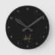 Elegante moderne Black Gold Script Monogram Round Clock. Ein elegantes Goldskriptmonogramm in Verbindung mit einem weißen San-Serif-Schriftart sorgt für ein zeitgemäßes Aussehen.