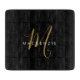 Elegantes, modernes Monogram-Schneidboard für Schwarzes Gold-Script. Ein elegantes Goldskriptmonogramm in Verbindung mit einem weißen San-Serif-Schriftart sorgt für ein zeitgemäßes Aussehen.