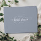 Dieses moderne kalligraphische Gästebuch ist perfekt für ein schlichtes und doch schönes Brautparty. Das staubige hellblaue Design zeichnet sich durch Ihren Namen und das Datum der Feier in minimalistischer Typografie zusammen mit einem romantischen, raffinierten Drehbuch aus. Fühlen Sie sich frei, die Hintergrundfarbe zu jeder anderen unter "Anpassen weiter".