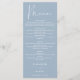 Dieses elegante, staubblaue Hochzeitsmenü kann mit Ihren Informationen in chic typografie personalisiert werden, mit Ihren Monogramm-Initialen auf der Rückseite. Entwickelt von Thisisnotme©