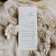 Dieses elegante Hochzeitsmenü mit luxuriöser Kalligraphie und klassischer Serifentypografie. Dieses Menü, das mit einem zeitlosen Design gestaltet wurde, kombiniert Einfachheit und Anmut, um die Schönheit Ihrer Hochzeit zu ergänzen.