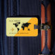 Ein großartiges Design, um Ihre Sachen zu identifizieren. Schwarze Weltkarte mit zweifarbigem gelbem Hintergrund mit Adresse, Name und Initialen