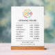 Dieses elegante Acrylzeichen zeigt Ihre Geschäftszeiten in einem modernen und minimalistischen Stil. Ideal für das Branding von Unternehmen, ist es eine einfache Möglichkeit, Kunden auf dem Laufenden behalten. Dieses Schild ist für kleine Unternehmen, die ihre Werbepräsenz verbessern möchten, geeignet und kann mit Ihrem Text individuell gestaltet werden. Mit dieser stilvollen, markierten Lösung können Sie Ihre Kundenerfahrung steigern!