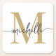 Girly Elegant Modern White and Gold Monogram Initial Name Signature Script Custom Personalisiert Square Paper Untersetzer. Dieses Design mit Ihrem Vornamen in einem hübschen handgeschriebenen Stil Swash Schwanz Schriftart Typografie (oder Kalligrafie) mit Monogramm Erstmaligkeit in Gold und Schwarz auf weißem Hintergrund. Einfach zu anpassen. Große stilvolle feminine Hauswärmeschenke, auch zum Geburtstag, Muttertag, Hochzeit, Brautparty, Babydusche, süße 16 Geburtstagsparty, für Graduiertenfeier und es ist für das Mädchen, das Lieben einzigartige minimalistische Dinge.
