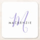 Eleganter moderner White Lavender Script Monogram Square Paper Untersetzer. Ein elegantes Lavender-Script-Monogramm kombiniert mit einem sauberen schwarzen San-Serif-Schriftart verleiht dem Ganzen einen zeitgemäßen Look.