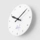 Elegante moderne White Lavender Script Monogram rund Uhr. Ein elegantes Lavender-Script-Monogramm kombiniert mit einem sauberen schwarzen San-Serif-Schriftart verleiht dem Ganzen einen zeitgemäßen Look.