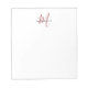 Elegantes, modernes, weißes Script Monogram Notepad. Ein elegantes Rot-Script-Monogramm kombiniert mit einem sauberen schwarzen San-Serif-Schriftart verleiht dem Ganzen einen zeitgemäßen Look.