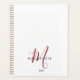Eleganter moderner, weißer, roter Script Monogram-Planer. Ein elegantes Rot-Script-Monogramm kombiniert mit einem sauberen schwarzen San-Serif-Schriftart verleiht dem Ganzen einen zeitgemäßen Look.