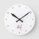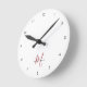 Elegante, moderne Rot-Script Monogram-Runde Uhr. Ein elegantes Rot-Script-Monogramm kombiniert mit einem sauberen schwarzen San-Serif-Schriftart verleiht dem Ganzen einen zeitgemäßen Look.