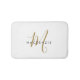Elegante moderne White-Script Monogram Bath Mat. Ein elegantes Goldskriptmonogramm kombiniert mit einem sauberen schwarzen San-Serif-Schriftart verleiht dem Ganzen einen zeitgemäßen Look.