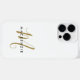 Elegant Modern White Gold Script Monogram iPhone Case. Ein elegantes Goldskriptmonogramm kombiniert mit einem sauberen schwarzen San-Serif-Schriftart verleiht dem Ganzen einen zeitgemäßen Look.