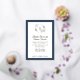 Einfache, elegante und moderne reale Goldfolie Bridal Dusche Einladung Design mit einem reichen, nautisch marineblau blauen Rand und Rückseite, Ihre Monogramm Initialen und Ihren Einladungstext. Dieses Design entstand aus handgezeichneten Blattfolienkränzen für einen zeitgenössischen Monogramm-Rahmen mit Kalligrafie Ampersand. Grafisch entworfen von Audrey Jeanne Roberts, international lizenzierter Künstlerin und Designer, Copyright.