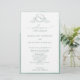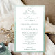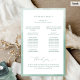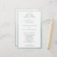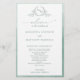 Elegantes Blassgrünes Hochzeitsprogramm mit handgezeichnet Monogramm und Aquarellrahmen in hellgrünen Farbtönen. Moderne handgeschriebene Kalligrafieelemente. Möglichkeit, Textänderungen und -anpassungen durchzuführen, indem Sie "Bearbeiten mit dem Entwurfstool" auswählen. Front mit den Details der Hochzeitsfeier, zurück mit den Namen der Hochzeitsfeier und danke Ihnen für die Nachricht für Ihre Gäste. Teil unserer Kollektion "Pale Green Watercolor, Botanical Monogram Wedding" mit einer Vielzahl von Produkten zur Koordination.