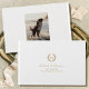 Lade deine Gäste ein, ihre besonderen Nachrichten und lustigen Erinnerungen in diesem personalisierten Gästebuch zu schreiben. Ein elegantes Design mit den Monogramm-Initialen des Paares in einer Lorbeerkrone und einem beliebten Foto auf der Rückseite. Eine einfache und stilvolle Kombination aus klassischer Serif- und Kalligraphie-Schrift in weiß und gold.