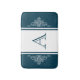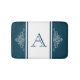 Elegantes Monogramm-Design mit Blumendekoration und Streifen auf blauem und weißem Hintergrund