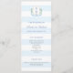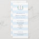 Dieses zeitlose Hochzeitsprogramm zeichnet sich durch ein klassisches Aquarellfarben-Monogramm-Wappen aus, das an der Küste inspiriert ist, und elegante weiße und weiße Streifen.