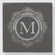 Fügen Sie eine Touch von Eleganz Ihrer Wohngestaltung mit diesen Chicschwarz-Stein-Untersetzer hinzu, die einen schönen, metallischen Blick des Silbers Mandala und einen Blickkreis des Imitats silbernen Metallgestalten Ihre eigene personalisierte Monogramminitiale in zusammenpassendem Grau, silberne Farbe kennzeichnen. Auf schwarzem Hintergrund der zu jeder möglicher Farbe geändert werden kann. Macht perfekte personalisierte Hochzeitsgeschenke für die Braut und den Bräutigam. Oder ein hoch entwickeltes Housewarminggeschenk. Wir haben zusammenpassende boho Mandala-Untersetzer im Gold auch in unserem Zazzle.com/angela65*-Geschäft und mit Monogrammeren in Housewarminggeschenken oder in Polterabendgeschenkideen.