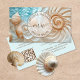 Mit dieser eleganten Visitenkarte-Vorlage im Küsten-Stil bringen Sie Ihrer Marke ein Gefühl von ruhiger Professionalität. Mit traumhaften Muscheln und Wasser in neutralen und türkisfarbenen Tönen. Das Layout beinhaltet einen Logo-Kreis für einen Namen und einen beruflichen Titel auf der Vorderseite, während die Rückseite einen anpassbaren Bereich für Kontaktinformationen, Social Media Links und einen scannbaren qr Code für Ihre Website bietet. Perfekt für: Wellness-Trainer, Life-Coaches, Yogalehrer, Reiseberater, Therapeuten, Fotografen, Künstler, ganzheitliche Heiler, Hochzeitsplaner, Schriftsteller, Innenarchitekten und andere herzzentrierte Profis.