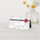 Dieses Design zeichnet sich durch elegantes Vintages Blatt-Muster und personalisiertes Wachs-Siegel aus. Der gemusterte, dunkelgraue Hintergrund kontrastiert mit dem schwarzen Band und dem roten Wachs-Siegel. Auf der Rückseite der Platzkarte werden die Braut- und Zeltnamen und das Hochzeitstermin gezeigt. Die Kombination aus Grautönen, Rot, Schwarz und Weiß schafft einen eleganten, trendigen und schicken Stil. Elegantes Hochzeitsdesign mit modernen Elementen in der Platzkarte. Das einfache Einrichten der Typografie verleiht ihr einen besonderen Stil. Auch die passenden Hochzeitseinladungen und andere Schreibwaren sind verfügbar. Einfach mit Ihren Daten personalisieren. Schreiben Sie Ihre Gastnamen und Tischnummer in dem vorgesehenen Platz.