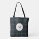 Moderne Weihnachtsstüte mit zeitlosem Design mit dem Monogramm auf einem matt blauen und grünen karierten Hintergrund.