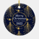 Elegante Navy Blue Gold Weihnachtsschmuck. Dieses kreisförmige Keramik-Ornament-Design zeichnet sich durch niedliches goldenes Weihnachtsbaumsternmuster auf blauem Hintergrund aus. Sie können Text, Größe und Farbe anpassen. Personalisieren Sie es mit Ihrem Familiennamen. Für weitere Anpassungen, kontaktieren Sie mich bitte unter kbasandra@gmail.com.