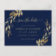 Elegantes Navy Blue Golden Foliage Save the Date Ankündigungspostkarte