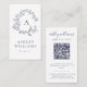 Elegantes Navy Blue Monogram QR Code Floral Wappen Visitenkarte