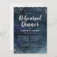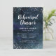 Elegante Hochzeitsdinner Probe Einladungs-Template-Karte mit silbernen Glitzer und marineblau Aquarell ombre. Das Design ähnelt einem Nachthimmel mit silbernen Sternen. Diese Galaxie inspiriert Karte enthält bereits Texte, die alle Informationen enthalten, die Sie für Ihre Veranstaltung benötigen. Texte sind online leicht anpassbar.