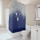 Eleganter Navy Blue Silver Glitzer Sparkle Monogram Duschvorhang. Ein lustiges und trendiges Design mit funkelndem Goldstaub-Glitzer-Effekt mit einem aufgeteilten Monogramm, das Sie anpassen können! **HINWEIS - Der Goldstaub/Glitzer ist grafisch simuliert und nicht echter Goldstaub. Dabei wird kein Goldstaub/Glitzer verwendet.