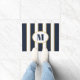 Elegantes Navy Blue und White Striping Monogramm Fußmatte