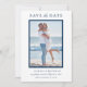 Save The Date! Mit diesen schlicht eleganten vertikalen Ankündigung Datum freihalten-Karten, die zwei Ihrer Lieblings-Verlobung-Fotos enthalten, und mit allen wichtigen Details auf der Vorder- und Rückseite der personalisiert werden können, verkünden Sie Ihre Hochzeit stilvoll. Ein modernes, sauberes und zeitloses Design. Das blau-weiße Marineblau kann individuell auf Ihre Fotos oder Hochzeitsfarben abgestimmt werden.