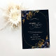 Elegante marineblaue Blumen mit goldenen Blätter auf marineblau-blauem Hintergrund. Schöne Einladung, die mit Ihrem Namen angepasst werden kann. Wählen Sie die Schaltfläche "Anpassen", um Stil, Farbe und Größe des Schriftartes zu ändern.