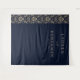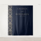Diese elegante Hochzeitskulisse verfügt über einen anspruchsvollen marineblauen Hintergrund mit einem vertikalen Damastmuster in hellbeige auf der linken Seite, das einen Hauch von klassischem Charme verleiht. Das Design umfasst anpassbare Textbereiche mit einer Mischung aus Serif- und Skript-Schriftarten, die Förmlichkeit und Personalisierung vermitteln und perfekt sind, um Namen und Daten hervorzuheben. Das saubere Layout und die ausgewogene Komposition schaffen eine Atmosphäre von zurückhaltendem Luxus und machen es ideal für formelle Feiern. Die zeitlose Farbpalette und die minimalen Motive sorgen dafür, dass diese Kulisse jedes Hochzeitsthema wunderbar ergänzt.