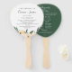 Eleganter, wasserfarbener, neutraler Blumenstrauß in Beige- und Grüntönen. Die Rückseite ist mit einem soliden smaragdgrünen Hintergrund versehen. Mehrere Zeilen für benutzerdefinierten Text, um die Hochzeitsfeier, Reihenfolge der Zeremonie Veranstaltungen und Dankeschön-Nachricht.