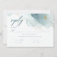 Eine Hochzeitskarte zum Thema Strand mit Vorlage zur Auswahl der Mahlzeiten, die eine abstrakte Aquarellszene eines Strandes mit Wellen mit goldenem Farbeffekt (das Gold ist ein digitaler Effekt, keine echte Folie!) und moderner Kalligraphie aufweist. Elegant und elegant, einfach und modern, ist es eine schöne Wahl für eine Hochzeit am Strand zu jeder Jahreszeit, für ein modernes Paar.
