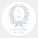 Elegantes Olive Leaf Wappen Blue Wedding Monogram Runder Aufkleber