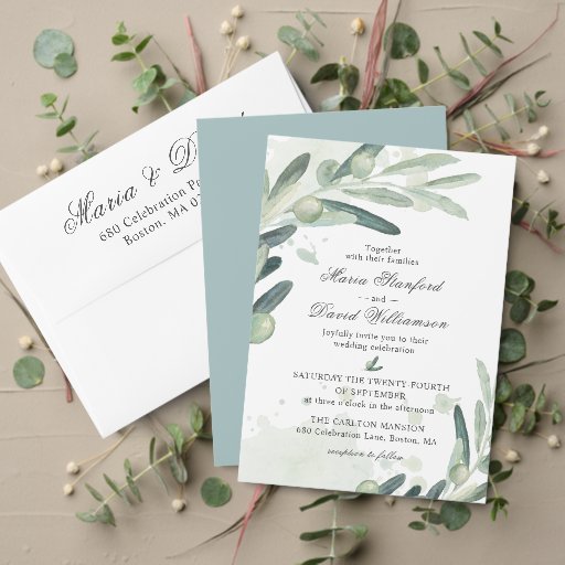 Elegant Watercolor Olive Sprig Branch WeddingDesignt von Jenny
