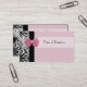 Verbreiten Sie das Wort über Ihre fantastische neue Butike mit diesen eleganten und trendy rosa und schwarzen Damastmuster-Geschäftskarten mit einem girly rosa Band. Ebenedruckbild, nicht tatsächliches Band.