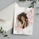 Feiern Sie Ihren Absolvent mit diesem zarten und raffinierten pastellrosa Foto. Gerahmt in blütigen Aquarellfarben-Rose und zarten Blätter mit subtilen Goldakzenten, bietet diese Einladung ein romantisches und feminines Design, das sich perfekt für den Frühlings- oder Sommerabschlussabend eignet. Der goldene geometrische Rahmen verleiht dem Ganzen einen modernen Rahmen und behalte gleichzeitig das Gesamtbild weich und zeitlos. Passen Sie es mit dem Namen, dem Unterrichtsjahr und der Schule für eine wirklich persönliche Touch an.