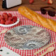 Elegantes, pastellfarbenes Spitzenmuster Pappteller