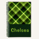 Elegantes Pea Green Kariert Monogram Spiral Notebo Notizbuch