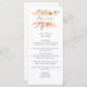 Elegante Menüvorlage mit exquisiten Aquarellfarben, Blumen und einer schönen Mischung aus pfirsich, orange, rot, staubigen Korallen, Creme und Champagner. Einfach Vorlage mit Namen, Datum und Menübeschreibung ausfüllen. Bei Bedarf können Sie das Editor-Tool verwenden und Änderungen an Textstil, Textgröße, Position und sogar Farbe vornehmen. Zurück in weißer Hintergrundfarbe, die mit dem Editor-Tool auf eine andere Farbe gewollt werden kann. Teil unserer Kollektionen "Peach Floral Delight" mit einer Vielzahl von Produkten zur Koordination, einschließlich Tischnummern, Sitzkarten und Günstige Tags.